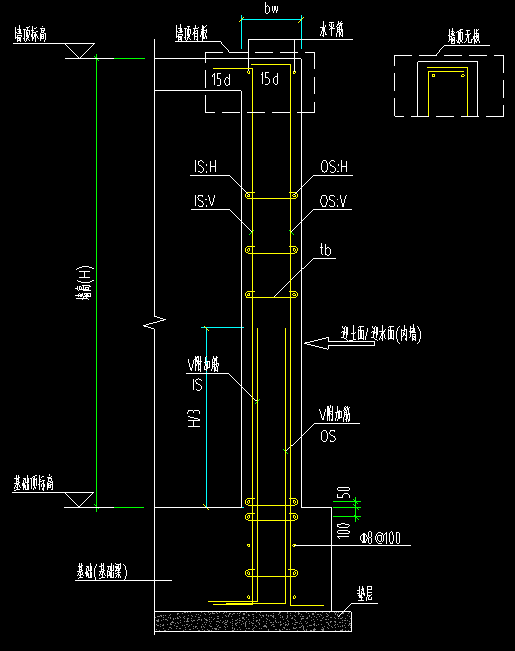 钢筋 墙配筋标注中的OS、IS、H、V、tb等都指哪些钢筋 作者Wang.Ge 2026年 2月 19日 OS外墙外侧贯通筋Outside、IS外墙内侧贯通筋Inside、(若墙存在三排筋,IN外墙中间贯通筋)。H水平贯通筋、V竖向贯通筋、tb拉结筋。